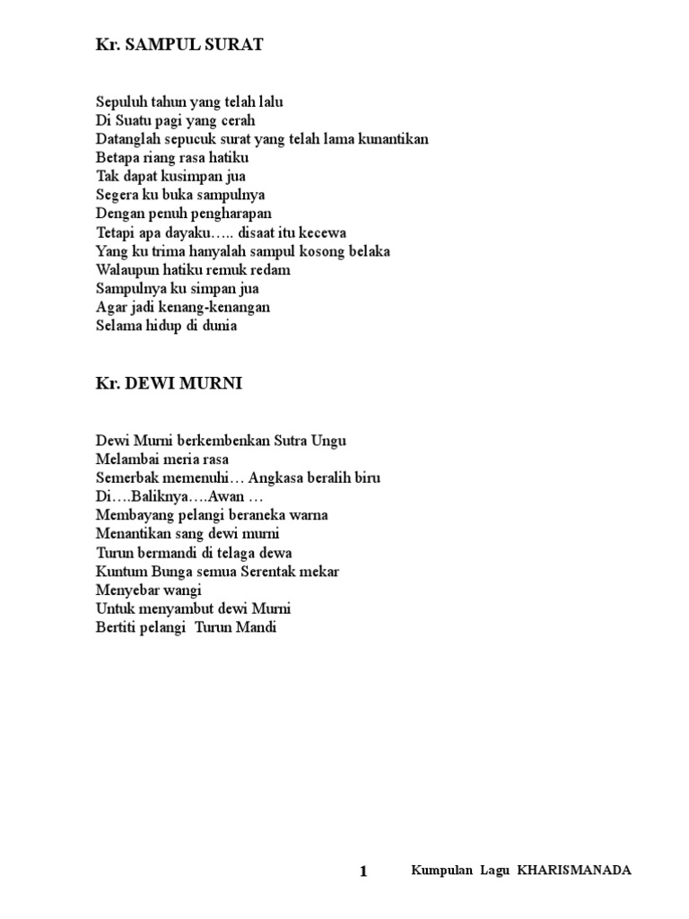 Perwira Janganlah kekanda bimbang Untuk pergi berjuang Andainya kau gugur Jasamu dikenang 1 Dengarlah lagu kucipta Gubahan mesra nan manja Sebagai ganti diri Bersama kau berbakti Untuk ibu pertiwi. Lirik Lagu Yesus Kristus Tuhan - JPCC Worship.