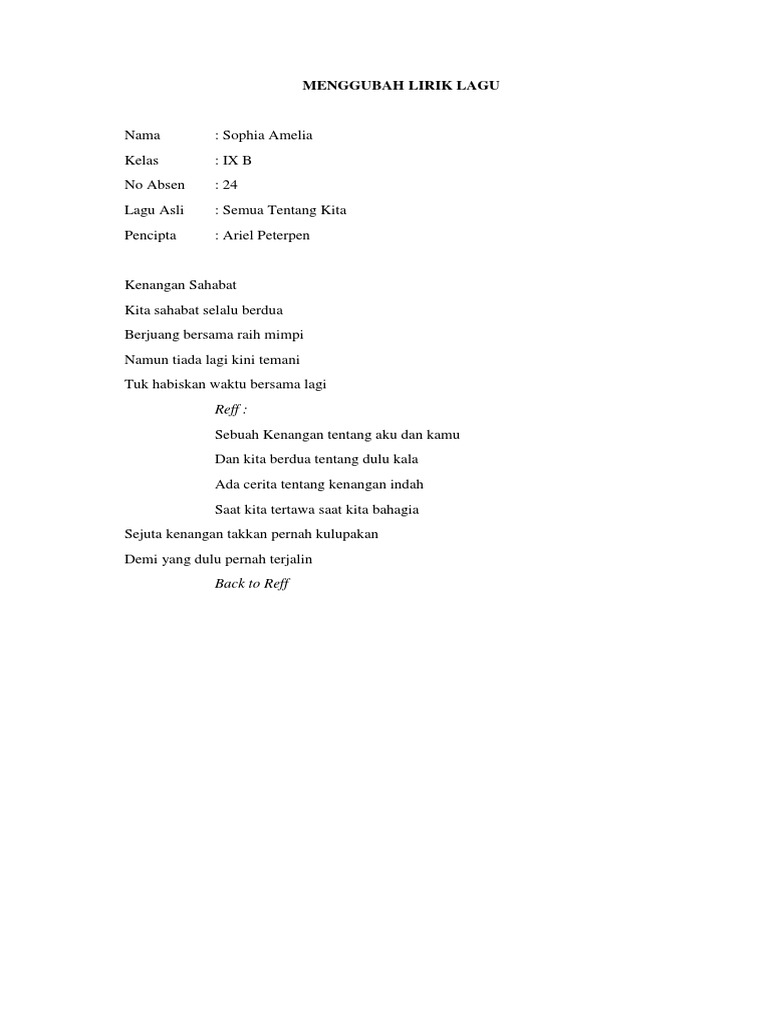 Ketikkan nama penyanyi dan judul lagu berikan tanda kutip di judul lagu misal. Ada satu nama suatu masa dulu. Nomor masih sama jadi tinggal telpon saja.